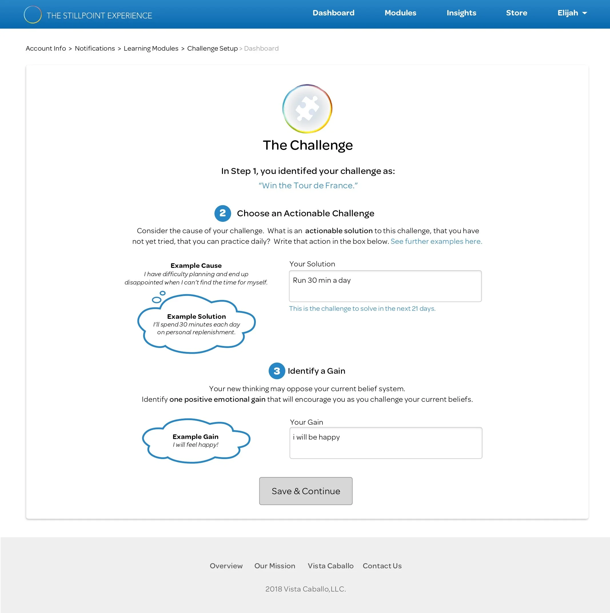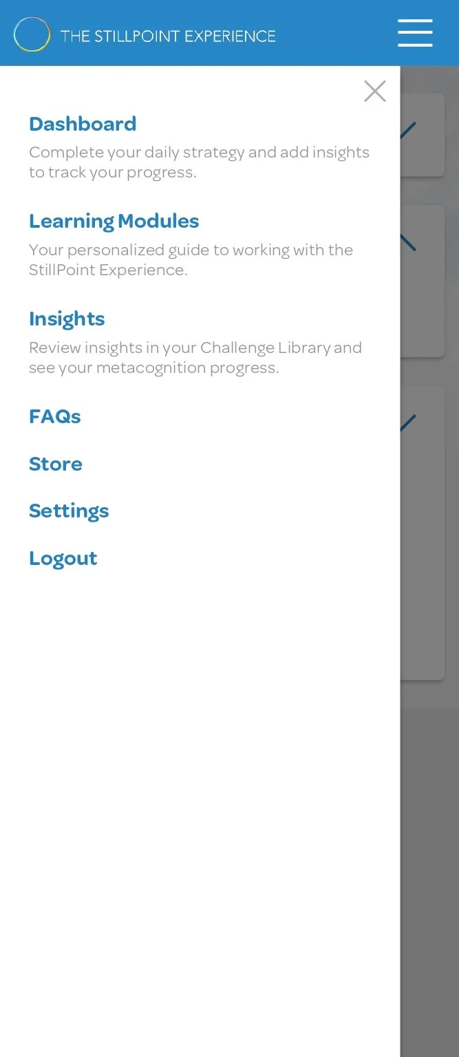 The StillPoint Experience is a self-guided tool to help business leaders develop innovative thinking as a skill. They would do this by learning to balance a different style of thinking with each challenge they chose to solve. Users would then log in to their dashboards daily to work toward solving that challenge by using a strategy geared toward a specific thinking style.